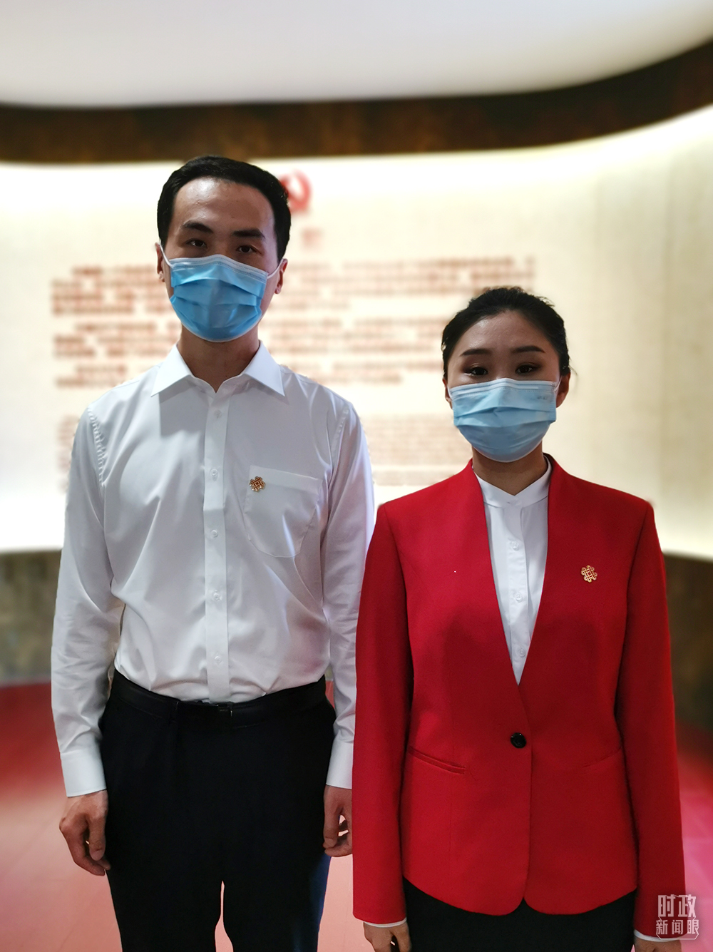 “光辉伟业 红色序章——北大红楼与中国共产党早期北京革命活动主题展”讲解员朱宁、谢尹楠。(总台央视记者李晓周拍摄)
