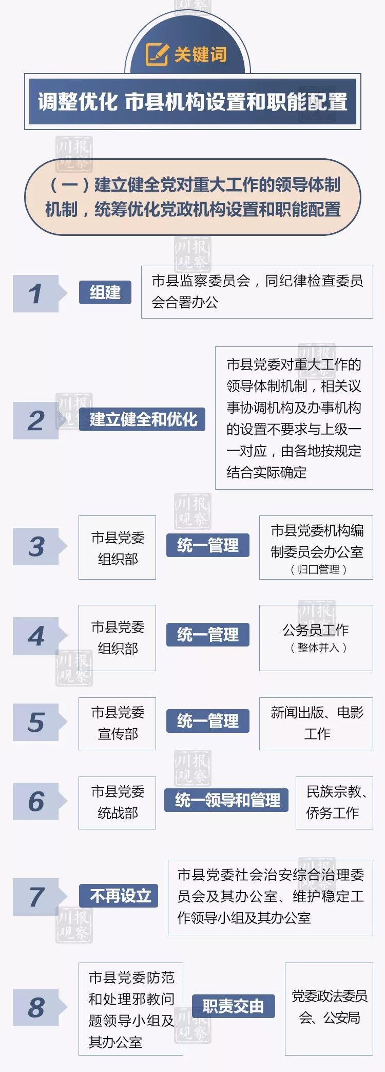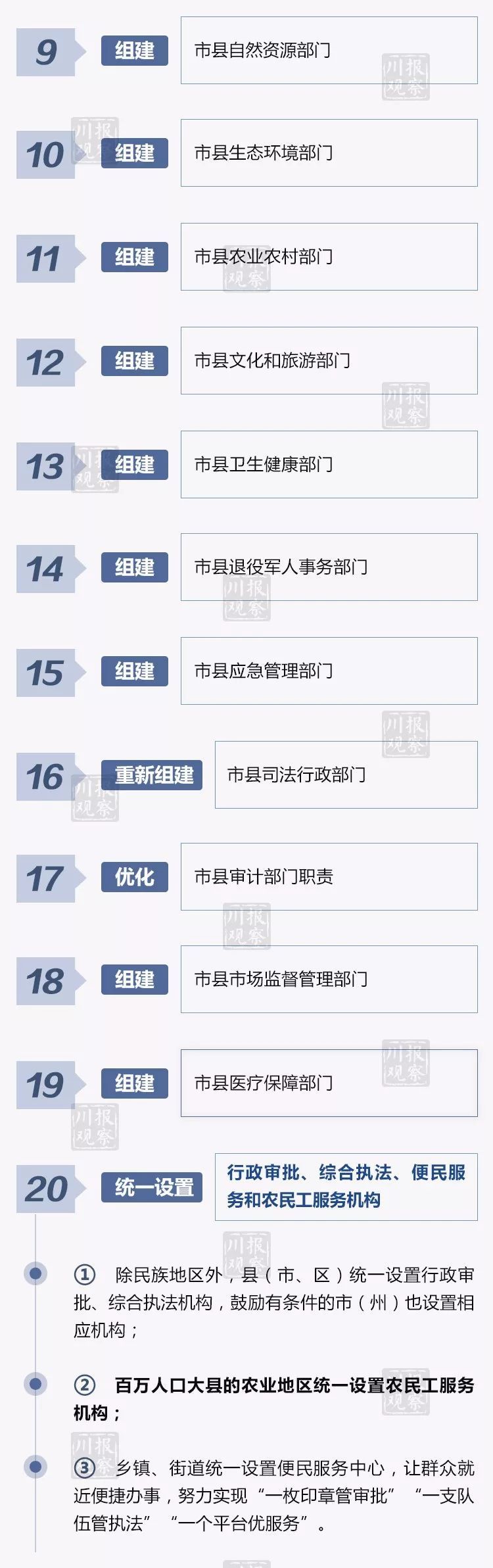 日前,中央正式备案同意《四川省委关于市县机构改革的总体意见》。11月16日上午,四川省市县机构改革专题培训会在成都举行,这标志着四川省市县机构改革进入全面实施阶段。按照要求,四川市县机构改革在2019年3月底前基本完成。