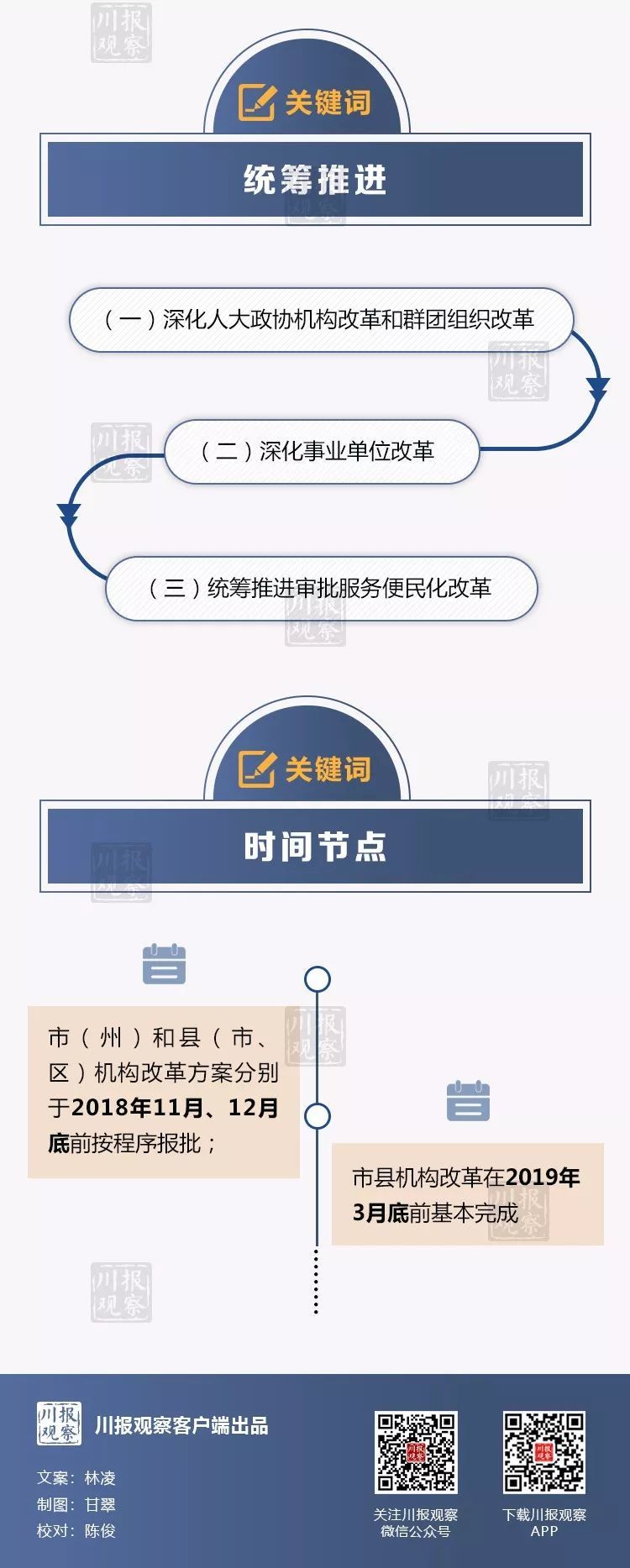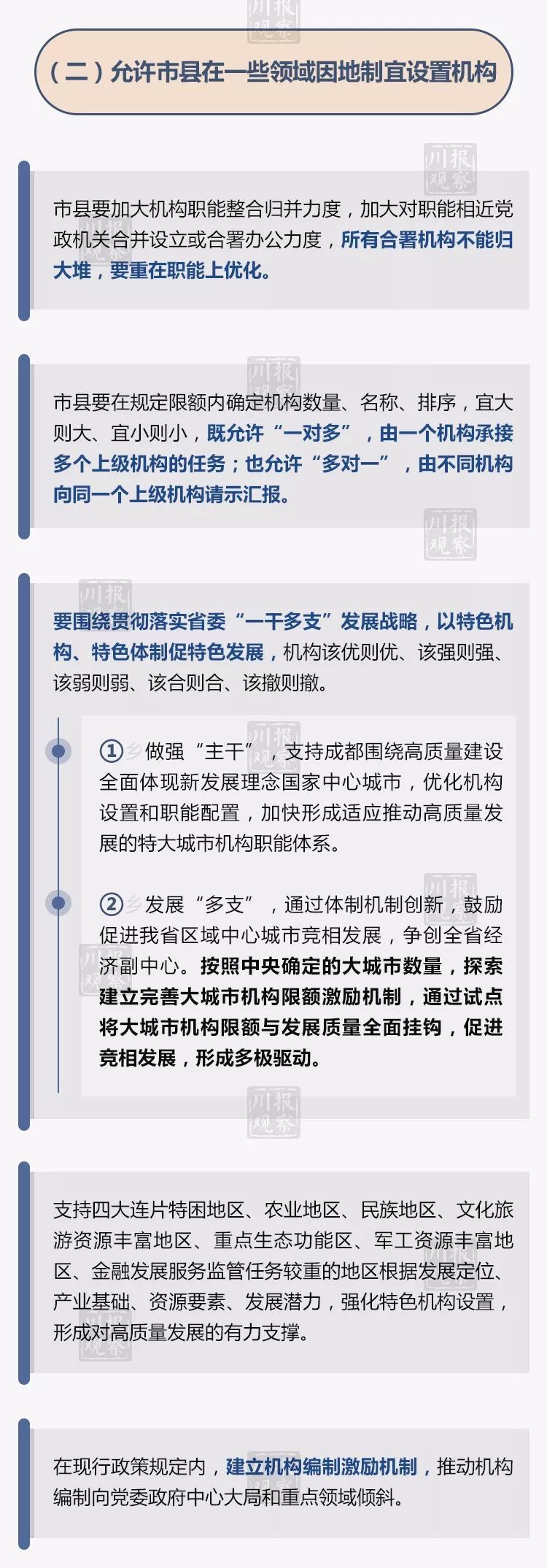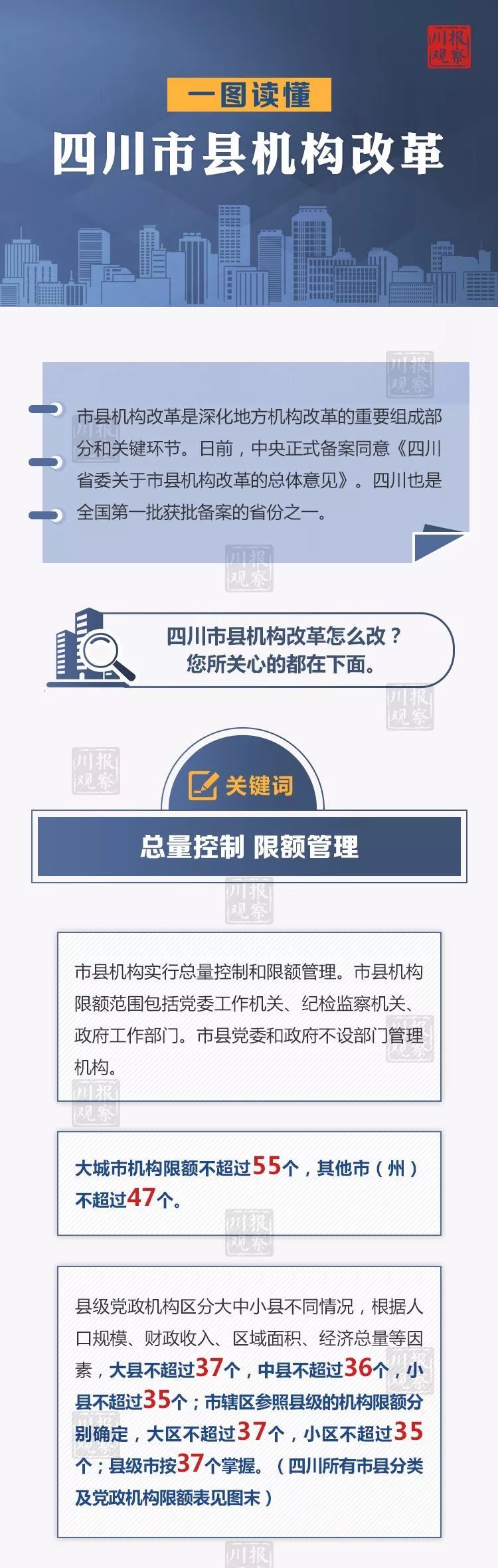 根据安排,成都市的改革方案由四川省委审核并报中央备案后批准。市(州)和县(市、区)机构改革方案分别于2018年11月、12月底前按程序报批。